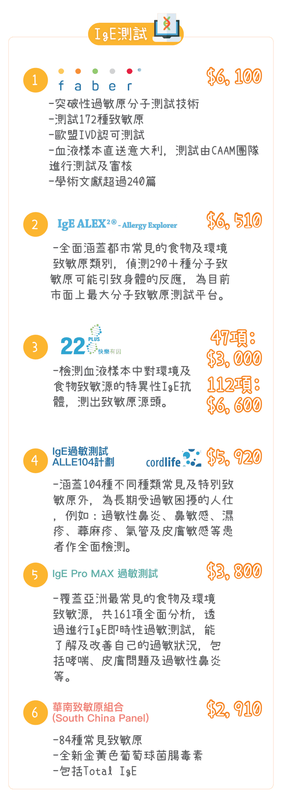 根據香港過敏科醫學會過敏測試應用最新指引: 1,IgE測試是一種被廣泛應用的過敏測試,過敏性休克也需要使用IgE血液測試作為診斷依據。此外,該學會發表的IgG測試研究報告2,表明“強烈不鼓勵以IgG測試結果作為診斷食物過敏或不耐的依據”。就此,香港過敏協會也曾舉行傳媒簡報3,強調IgG抗體測試“沒有任何意義”。患者如果想要瞭解自己是否對某種食物過敏,應該接受IgE血液過敏測試。